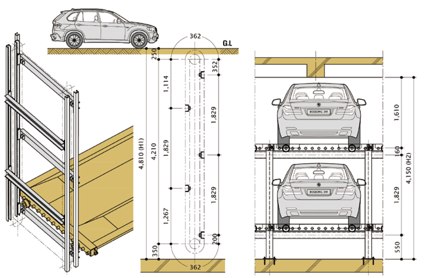 • 차량을 매우 최소공간에 주차가 가능합니다.